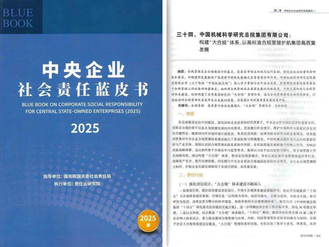 12月5日,2025年中央企業(yè)和地方國(guó)企社會(huì)責(zé)任藍(lán)皮書發(fā)布會(huì)在京召開,集團(tuán)黨委委員、副總經(jīng)理王宇出席會(huì)議。會(huì)上,《中央企業(yè)社會(huì)責(zé)任藍(lán)皮書(2025)》正式發(fā)布,集團(tuán)“...
