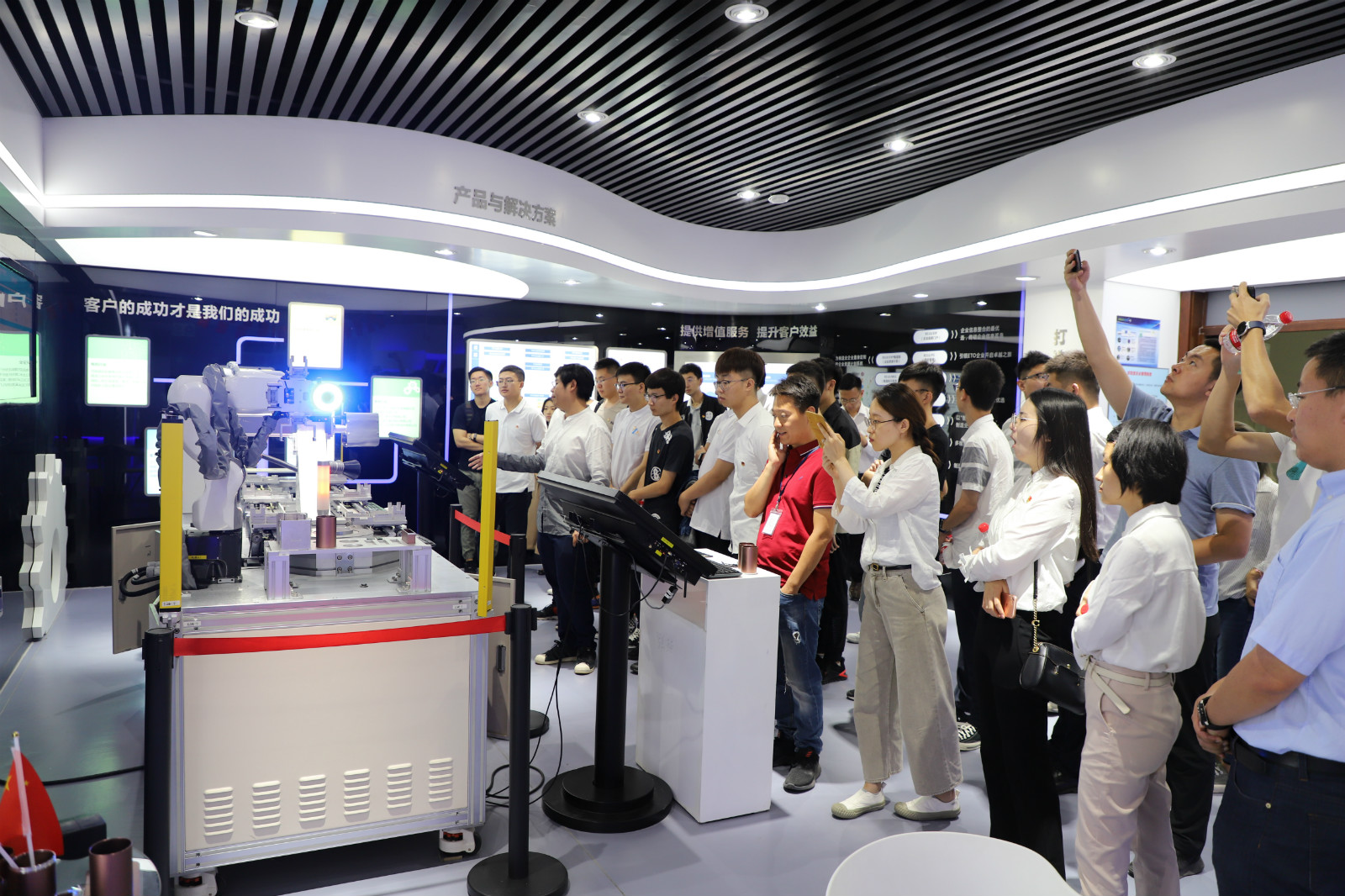 在團員青年嘹亮的國歌聲中,本次活動拉開了序幕。機科股份范朋、輕量化院肖寧在國旗下進行了精彩演講,表達了對祖國無限的熱愛和崇高的敬意。隨后,團員青年參觀了北自所展示廳和智能制造實驗室。北自科技團支部書記洪騰講授了微團課,京區單位團委負責人就青年和共青團工作進行了匯報交流。最后,北自所黨委書記王振林寄語團員青年,要通過了解國家大勢,不斷加強職業化,提高自身管理能力,早日成長成才。